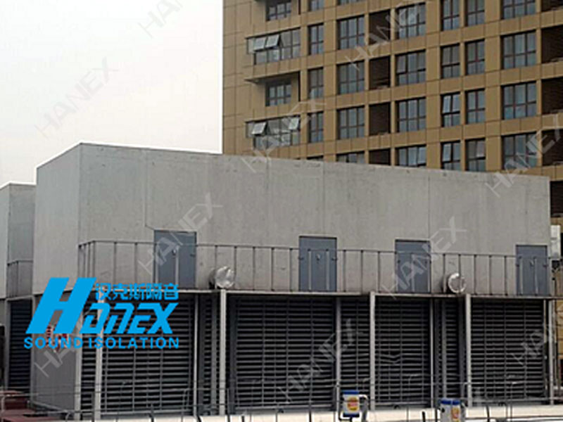德盈廣場東面3組冷卻塔設(shè)備正常運行產(chǎn)生90-95分貝噪聲,對周邊公寓、酒店、辦公區(qū)造成不良影響。漢克斯隔音設(shè)計1.冷卻塔出風(fēng)口消聲器,2.冷卻塔四周安裝吸隔聲屏障,工程結(jié)束后敏感區(qū)噪聲測量值低于45分貝。