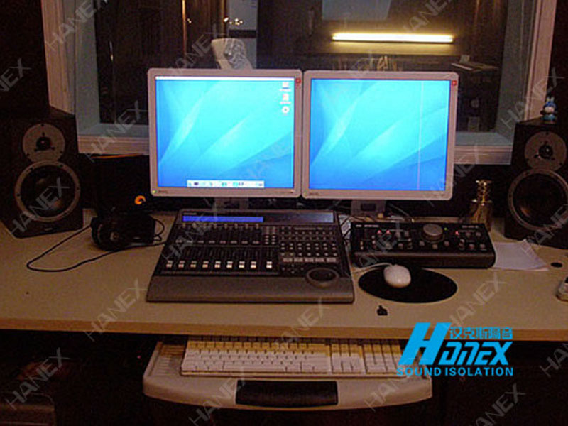 4室內墻面吸音軟包處理。施工結束后,錄音室、控制室聲場測試符合混響系數(shù)與吸音參數(shù);隔音效果良好本體噪聲在29分貝以下。
